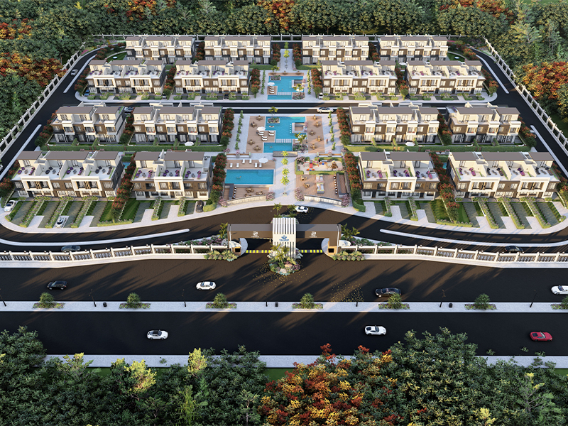 عقارات ذات محيط طبيعي مع 85٪ من المخطط الرئيسي المخصص للخضرة في الهواء الطلق والبحيرات والباقي 15٪ موزعة على أنواع المنازل ذات الإصدار المحدود.